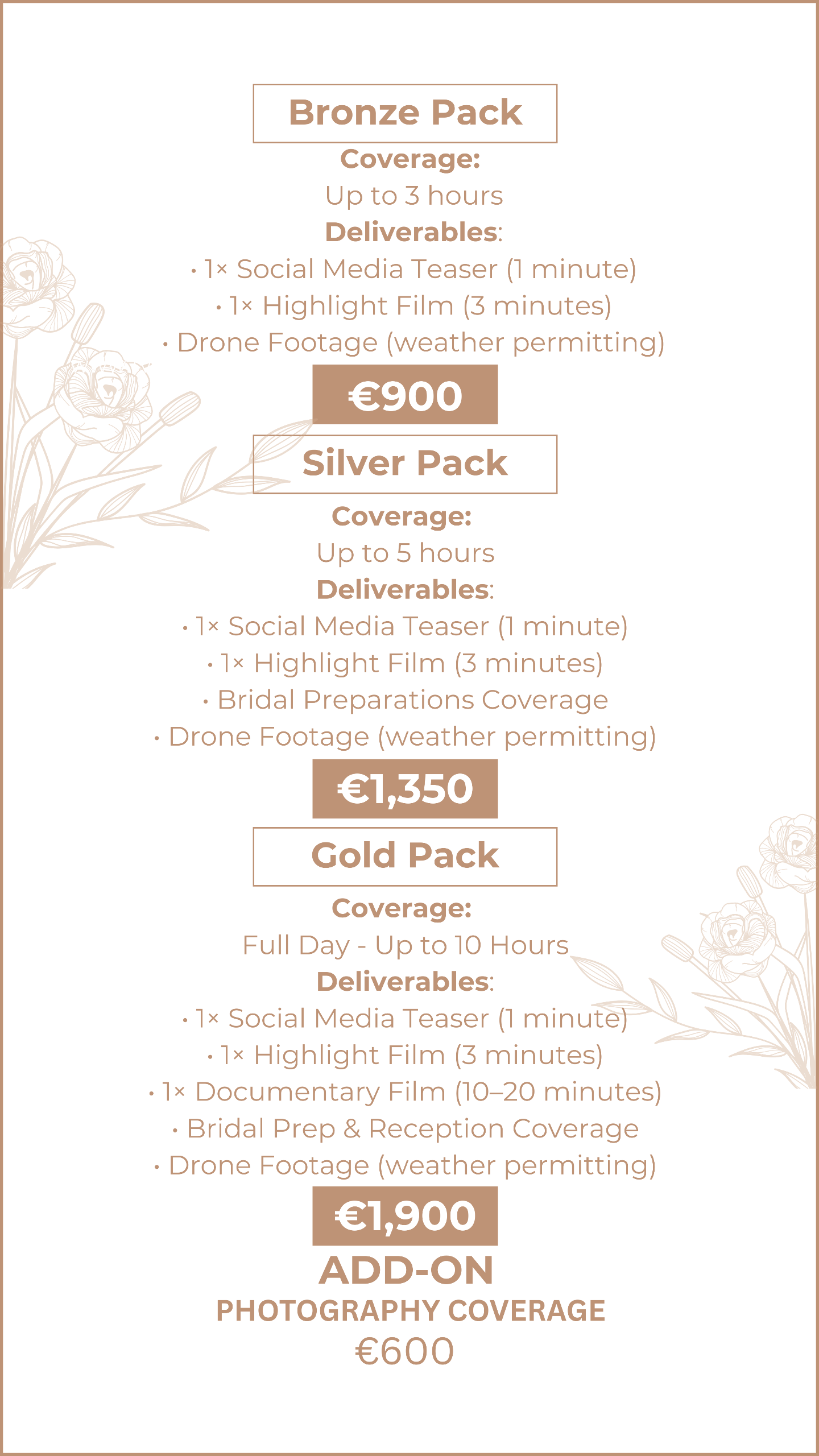 • A deposit, equal to the shoot day cost, is required to secure your booking.• The deposit is refundable if canceled within 3 days of booking.• The deposit becomes non-refundable if canceled after 3 days from booking.• Rescheduling is optional and can be done with 3 days’ notice, subject to availability.